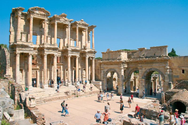Η αρχαία Εφεσος ήταν ένα από τα πλουσιότερα ελληνικά πολιτιστικά κέντρα της Μεσογείου, πασίγνωστη για τον ναό της Αρτέμιδος (Αρτεμίσιο), ένα από τα επτά θαύματα του κόσμου. Ξεχωρίζουν το Μεγάλο Θέατρο όπου κήρυξε ο Απόστολος Παύλος και η Βιβλιοθήκη του Κέλσου, ένα από τα μεγαλύτερα αρχαία κτίρια βιβλιοθήκης στον κόσμο. Χτίστηκε το 125 μ.Χ από τον γιο του Κέλσου προς τιμή του Ρωμαίου γερουσιαστή (εκεί βρίσκεται και η σαρκοφάγος του) και φιλοξενούσε 12.000 βιβλία σε μορφή κυλίνδρων. Η πρόσβαση είναι εύκολη από το Κουσάντασι, ένα από τα πιο κοσμικά σημεία στα τουρκικά παράλια στο Αιγαίο, απέναντι από τη Σάμο.